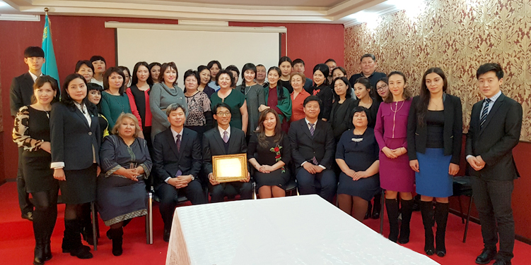 После окончания лекции директор колледжа «Авимед» Акылсерик Б. Ж. вручила директору центра IMEI в г.Алматы г-ну Ким Сон Гу благодарственную грамоту, а также пожелала наладить долгосрочные, взаимовыгодные, партнерские отношения.